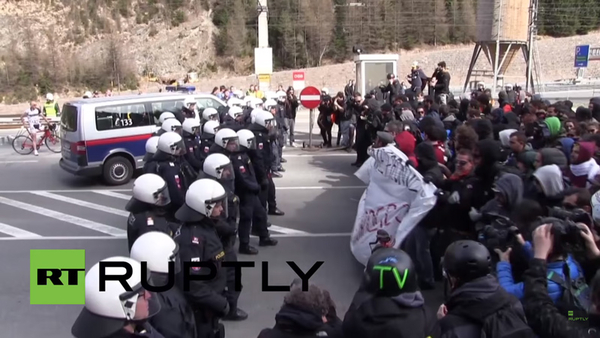 Brenner Pass border crossing with Italy, as a crowd tries to break