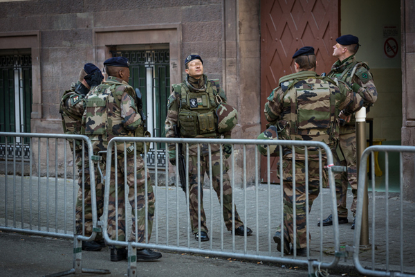 and the Middle East. Pictured above: French soldiers guard a Jewish school in