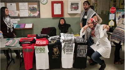 declaring, "Free Palestine, End the Israeli Occupation,"