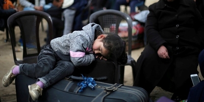 of Palestinian travelers gathered at Gaza's border crossing with Egypt on