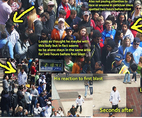 BREAKING NEWS: These photos clearly reveal the covert team that planned and set off the bombs that maimed and killed people at the Boston Marathon on Monday. These are the actual security camera photos from the day of the race. In these photos, you can clearly see men of Middle Eastern descent with backpacks that disappear. Draw your own conclusions.